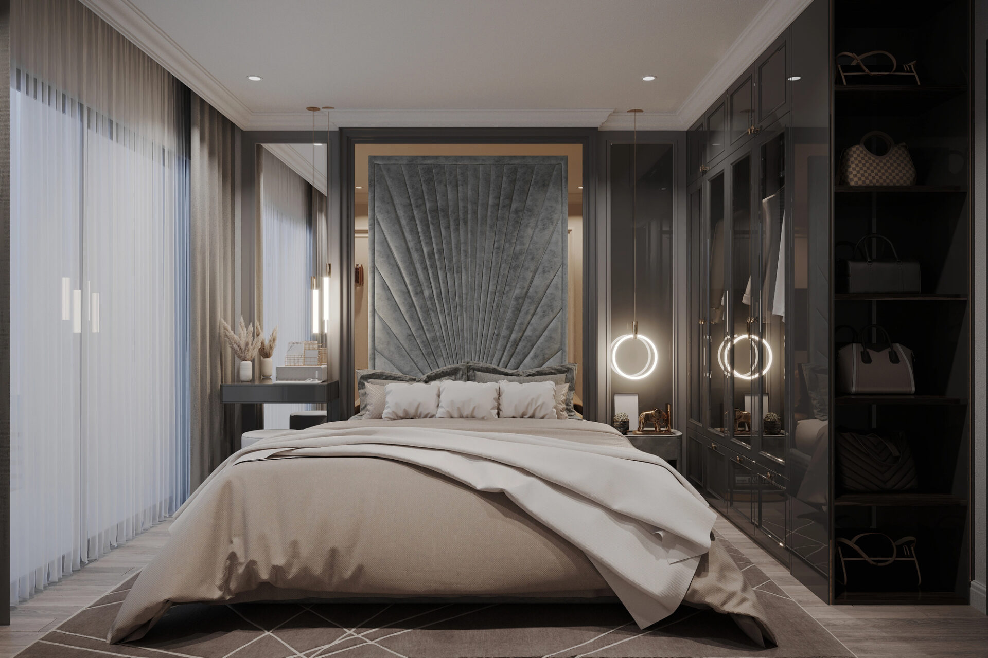 Kleuren hebben een grote invloed op rust en slaapkwaliteit. Neutrale tinten zoals beige, lichtgrijs of zachte pastels creëren een kalme sfeer. Accentkleuren kunnen gebruikt worden in accessoires zoals kussens, dekens of wanddecoratie om persoonlijkheid toe te voegen zonder de rust te verstoren. Materialen zoals zacht textiel en hout versterken het gevoel van comfort en geborgenheid.